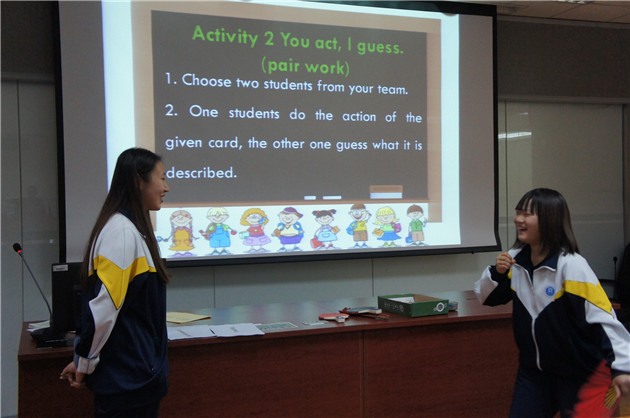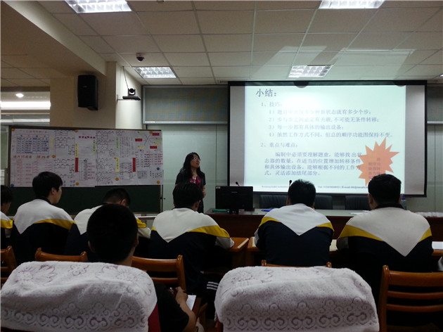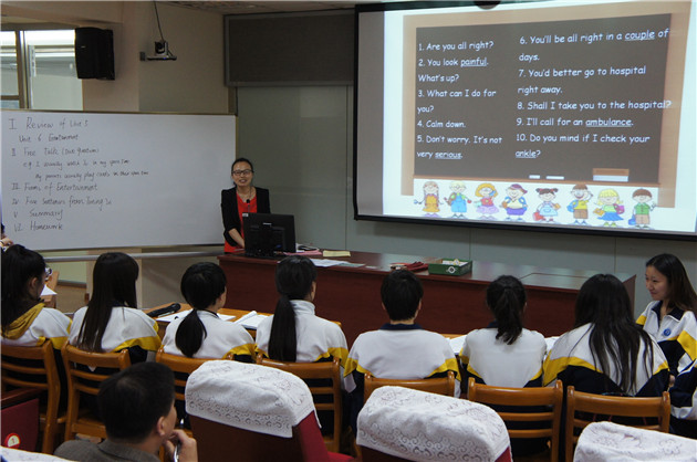 姚海翠:现代服务教研室姚海翠老师的授课内容是Entertainment,教学内容是学习新单词、主要句子结构及讨论娱乐的方式。教师课前准备充分,采用学生讨论问题方式、游戏方式来激发学生积极参与课堂,充分体现英语课讲练结合的形式。