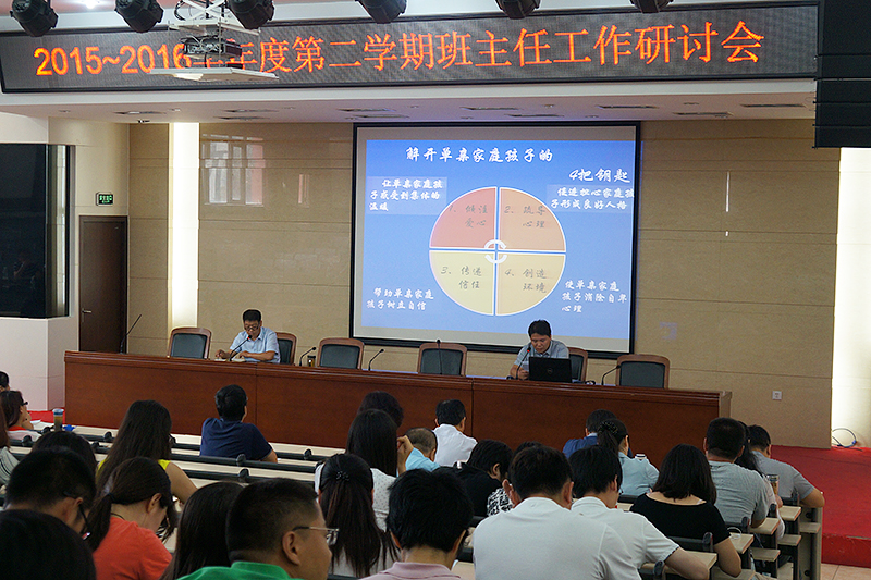 2016年7月18日上午,我院召开了2015-2016学年度第二学期班主任工作研讨会。研讨会由院党委副书记刘建明主持,院领导及各处室系部老师参加。本次研讨会围绕着“班级文化建设、学生禁烟工作、特殊家庭学生教育工作”为主题。经过筛选,推选出六位老师做了精彩的发言。