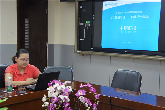 会上,食品检验团队带头人张磊和玉雕团队核心成员刘彬按照北京市职业能力建设指导中心汇报答辩的要求,采用PPT的形式分别从团队建设、经费使用与管理、建设成效与创新、存在问题与改进措施四方面汇报了团队建设情况。