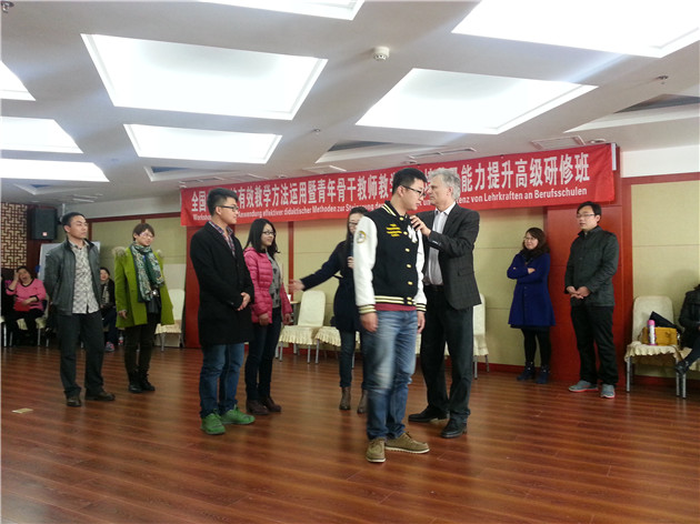 为深入贯彻落实《国家中长期教育改革和发展规划纲要(2010-2020年)》文件精神,全面提高职业院校课堂教学实效性与青年教师的实战教学能力,我院组织各专业青年骨干教师26人于2015年4月11——12日参加了由中国高等教育发展研究会职业教育委员会与德国慕尼黑教育协会、德国巴伐利亚州文化交流中心联合举办召开的“全国中职示范校有效教学方法运用暨青年骨干教师教学乐趣培养及能力提升高级研修班”。